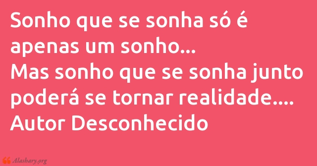 Sonho que se sonha só é apenas um sonho... Mas sonho que se sonha junto poderá se tornar realidade....