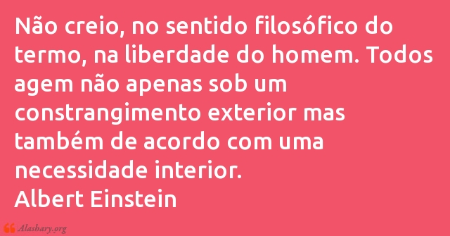 Não creio, no sentido filosófico do termo, na liberdade do homem. Todos agem não apenas sob um constrangimento exterior mas também de acordo com uma necessidade interior. Albert Einstein