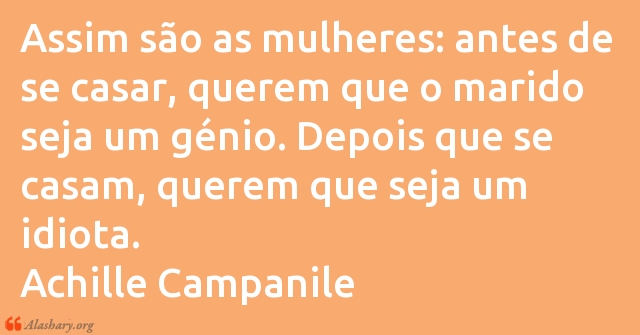 Assim são as mulheres: antes de se casar, querem que o marido seja um génio. Depois que se casam, querem que seja um idiota.