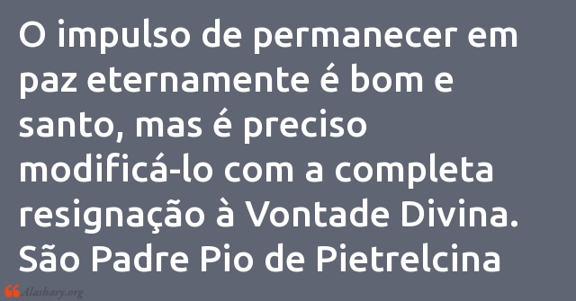 O impulso de permanecer em paz eternamente é bom e santo, mas é preciso modificá-lo com a completa resignação à Vontade Divina.