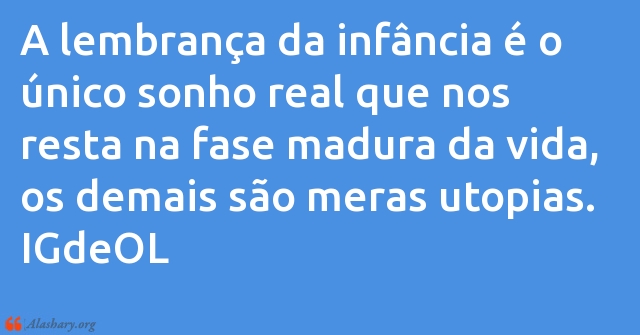 A lembrança da infância é o único sonho real que nos resta na fase madura da vida, os demais são meras utopias. IGdeOL