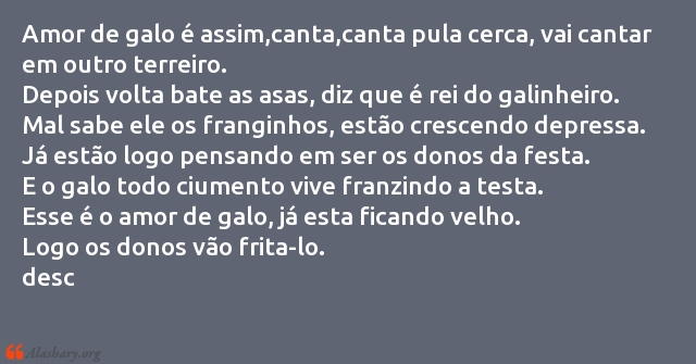 Amor de galo é assim,canta,canta pula cerca, vai cantar em outro terreiro.