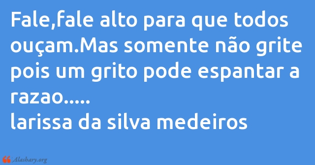 Fale,fale alto para que todos ouçam.Mas somente não grite pois um grito pode espantar a razao.....