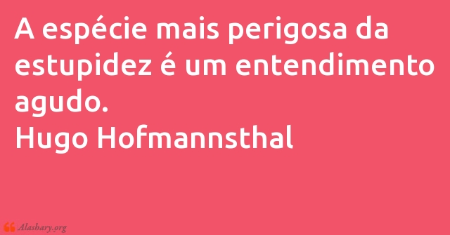 A espécie mais perigosa da estupidez é um entendimento agudo. Hugo Hofmannsthal