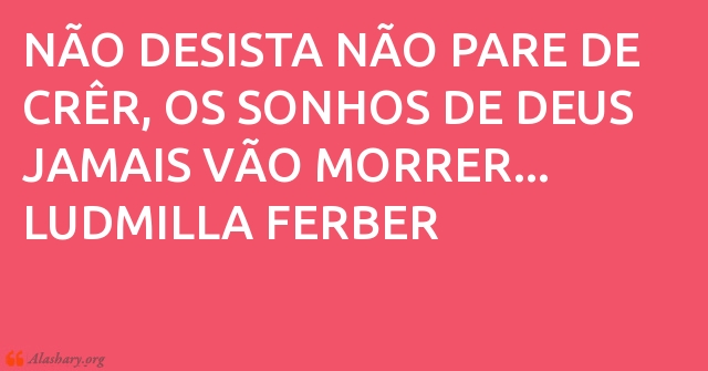NÃO DESISTA NÃO PARE DE CRÊR, OS SONHOS DE DEUS JAMAIS VÃO MORRER...