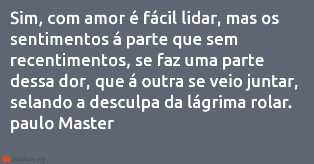 Sim, com amor é fácil lidar, mas os sentimentos á parte que sem recentimentos, se faz uma parte dessa dor, que á outra se veio juntar, selando a desculpa da lágrima rolar.