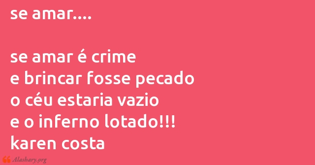 se amar.... se amar é crime e brincar fosse pecado o céu estaria vazio e o inferno lotado!!! karen costa