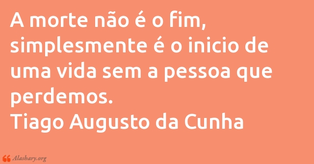 A morte não é o fim, simplesmente é o inicio de uma vida sem a pessoa que perdemos. Tiago Augusto da Cunha