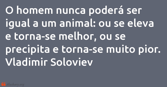 O homem nunca poderá ser igual a um animal: ou se eleva e torna-se melhor, ou se precipita e torna-se muito pior.