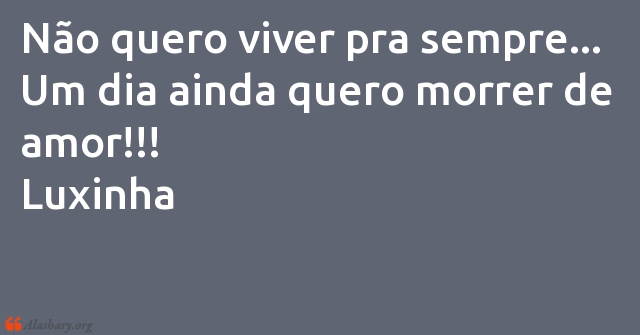 Luxinha: Não quero viver pra sempre... Um dia ainda quero