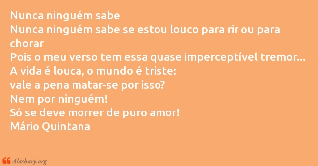 Nunca ninguém sabe se estou louco para rir ou para chorar