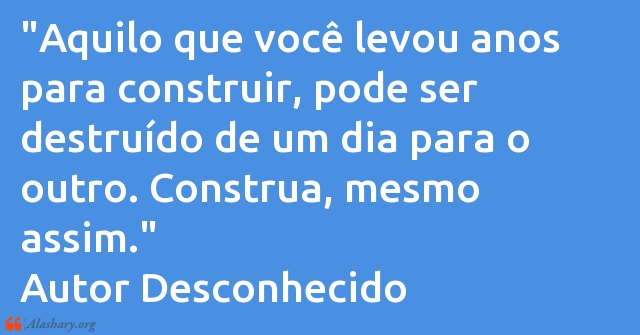 "Aquilo que você levou anos para construir, pode ser destruído de um dia para o outro. Construa, mesmo assim."