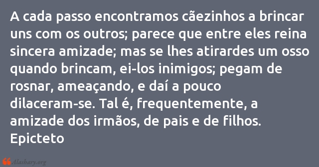 A cada passo encontramos cãezinhos a brincar uns com os outros; parece que entre eles reina sincera amizade; mas se lhes atirardes um osso quando brincam, ei-los inimigos; pegam de rosnar, ameaçando, e daí a pouco dilaceram-se. Tal é, frequentemente, a amizade dos irmãos, de pais e de filhos.