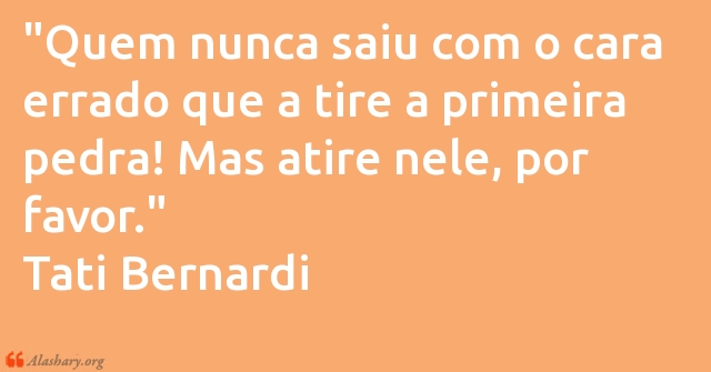 "Quem nunca saiu com o cara errado que a tire a primeira pedra! Mas atire nele, por favor." Tati Bernardi