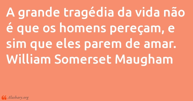 A grande tragédia da vida não é que os homens pereçam, e sim que eles parem de amar. William Somerset Maugham