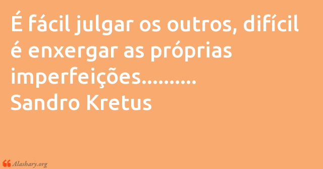 É fácil julgar os outros, difícil é enxergar as próprias imperfeições.......... Sandro Kretus