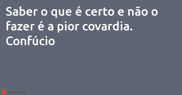 Saber o que é certo e não o fazer é a pior covardia. Confúcio