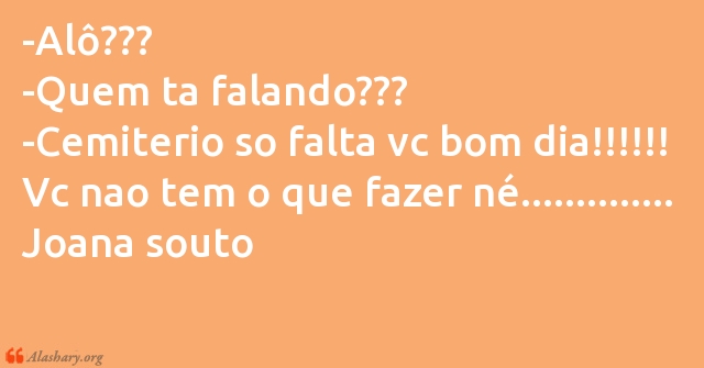 Joana souto: -Alô??? -Quem ta falando??? -Cemiterio so falta v