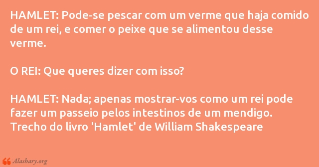 HAMLET: Pode-se pescar com um verme que haja comido de um rei, e comer o peixe que se alimentou desse verme.