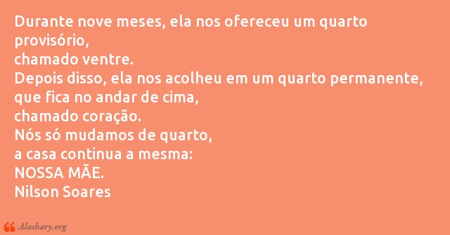 Nilson Soares: Durante nove meses, ela nos ofereceu um quarto pro