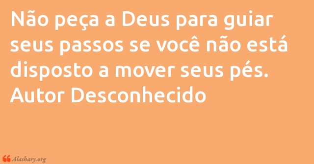 Não peça a Deus para guiar seus passos se você não está disposto a mover seus pés. Autor Desconhecido