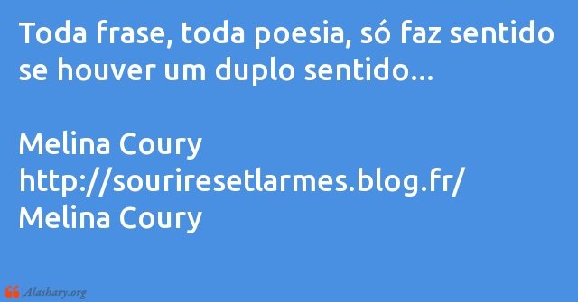 Toda frase, toda poesia, só faz sentido se houver um duplo sentido... Melina Coury http://souriresetlarmes.blog.fr/