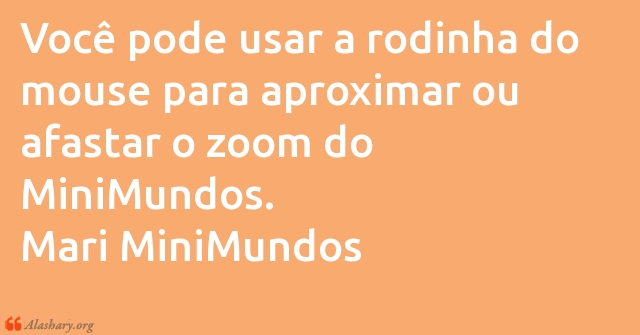 Você pode usar a rodinha do mouse para aproximar ou afastar o zoom do MiniMundos. Mari MiniMundos