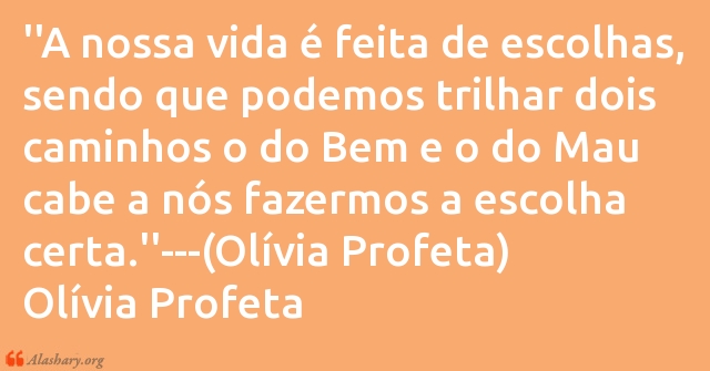 ''A nossa vida é feita de escolhas, sendo que podemos trilhar dois caminhos o do Bem e o do Mau cabe a nós fazermos a escolha certa.''---(Olívia Profeta)