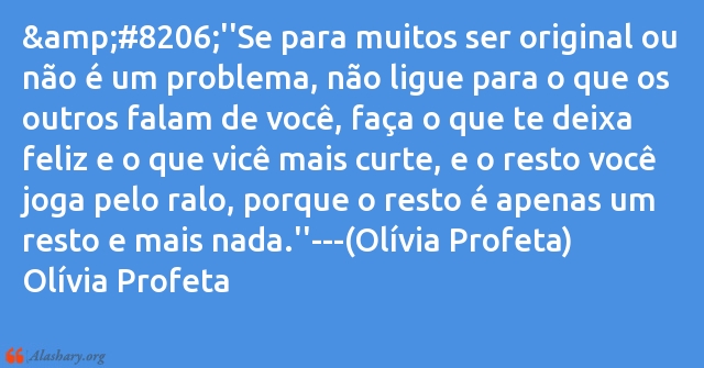 ‎''Se para muitos ser original ou não é um problema, não ligue para o que os outros falam de você, faça o que te deixa feliz e o que vicê mais curte, e o resto você joga pelo ralo, porque o resto é apenas um resto e mais nada.''---(OlÃvia Profeta)