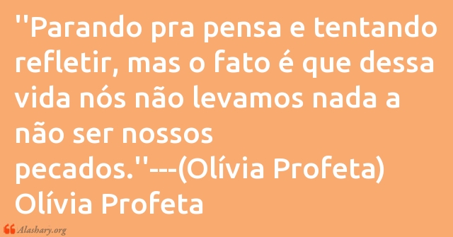 ''Parando pra pensa e tentando refletir, mas o fato é que dessa vida nós não levamos nada a não ser nossos pecados.''---(Olívia Profeta) Olívia Profeta