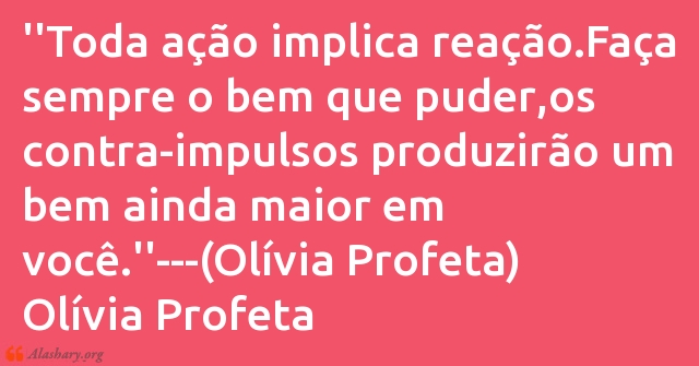 ''Toda ação implica reação.Faça sempre o bem que puder,os contra-impulsos produzirão um bem ainda maior em você.''---(Olívia Profeta) Olívia Profeta