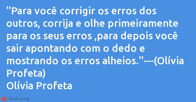 ''Para você corrigir os erros dos outros, corrija e olhe primeiramente para os seus erros ,para depois você sair apontando com o dedo e mostrando os erros alheios.''---(Olívia Profeta)