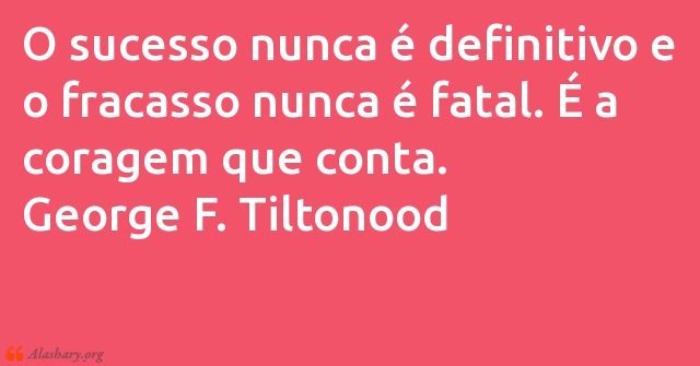 O sucesso nunca é definitivo e o fracasso nunca é fatal. É a coragem que conta. George F. Tiltonood