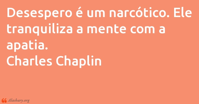 Desespero é um narcótico. Ele tranquiliza a mente com a apatia. Charles Chaplin