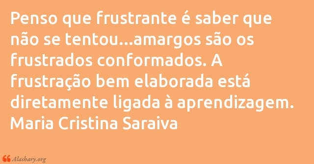 Penso que frustrante é saber que não se tentou...amargos são os frustrados conformados. A frustração bem elaborada está diretamente ligada à aprendizagem. Maria Cristina Saraiva