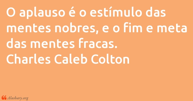 O aplauso é o estímulo das mentes nobres, e o fim e meta das mentes fracas. Charles Caleb Colton