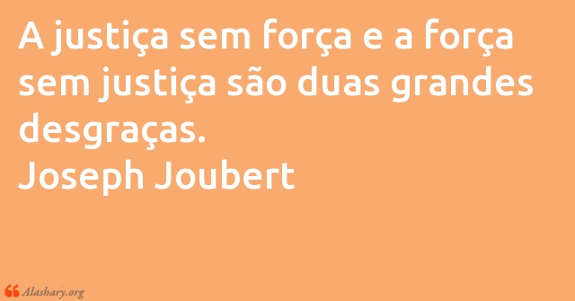 A justiça sem força e a força sem justiça são duas grandes desgraças. Joseph Joubert
