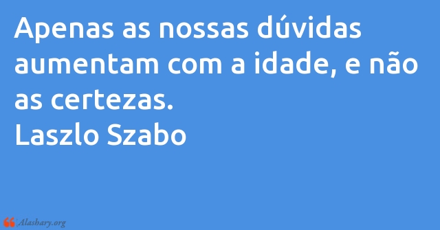 Apenas as nossas dúvidas aumentam com a idade, e não as certezas. Laszlo Szabo
