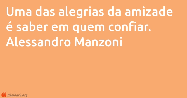 Uma das alegrias da amizade é saber em quem confiar. Alessandro Manzoni