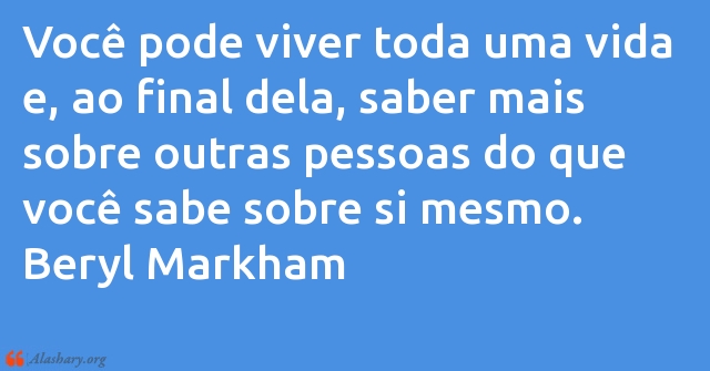 Você pode viver toda uma vida e, ao final dela, saber mais sobre outras pessoas do que você sabe sobre si mesmo. Beryl Markham