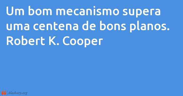 Um bom mecanismo supera uma centena de bons planos. Robert K. Cooper