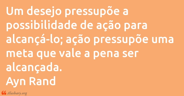 Um desejo pressupõe a possibilidade de ação para alcançá-lo; ação pressupõe uma meta que vale a pena ser alcançada. Ayn Rand
