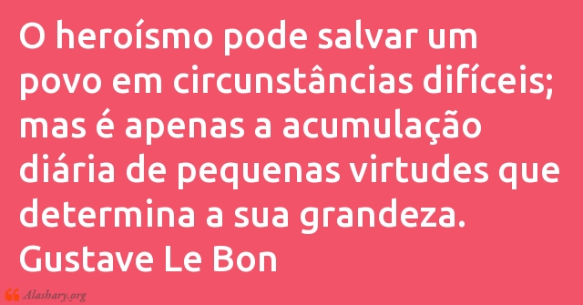 O heroísmo pode salvar um povo em circunstâncias difíceis; mas é apenas a acumulação diária de pequenas virtudes que determina a sua grandeza. Gustave Le Bon