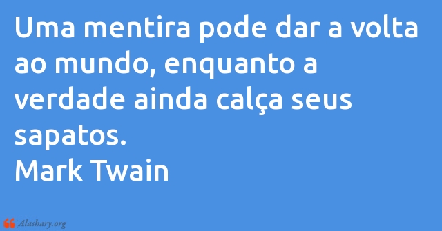 Uma mentira pode dar a volta ao mundo, enquanto a verdade ainda calça seus sapatos. Mark Twain
