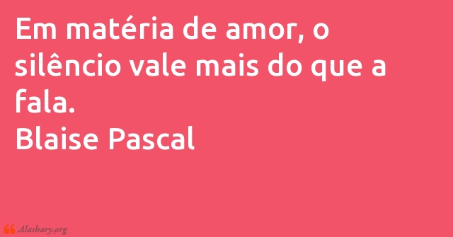 Em matéria de amor, o silêncio vale mais do que a fala. Blaise Pascal