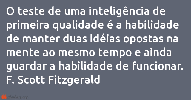O teste de uma inteligência de primeira qualidade é a habilidade de manter duas idéias opostas na mente ao mesmo tempo e ainda guardar a habilidade de funcionar.