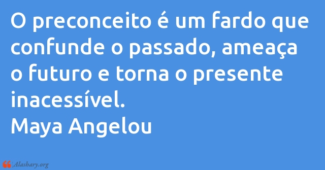 O preconceito é um fardo que confunde o passado, ameaça o futuro e torna o presente inacessível. Maya Angelou