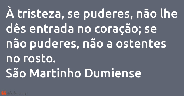 À tristeza, se puderes, não lhe dês entrada no coração; se não puderes, não a ostentes no rosto. São Martinho Dumiense