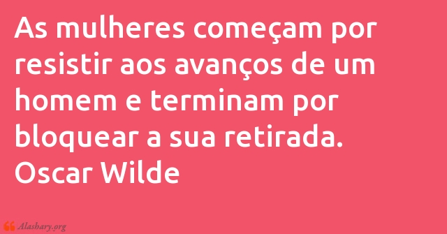 As mulheres começam por resistir aos avanços de um homem e terminam por bloquear a sua retirada. Oscar Wilde