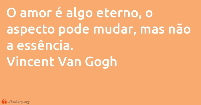 O amor é algo eterno, o aspecto pode mudar, mas não a essência. Vincent Van Gogh